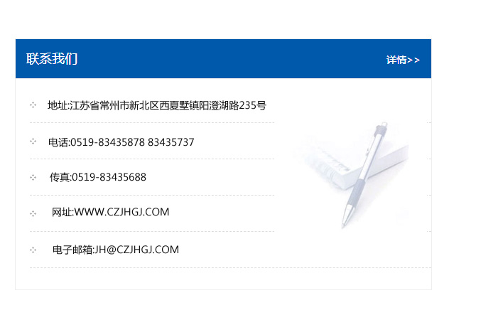 傳真:0519-83435688    郵編:213135    網址:WWW.czjhgj_com.losthorizonswine.com    電子郵箱:JH@czjhgj_com.losthorizonswine.com